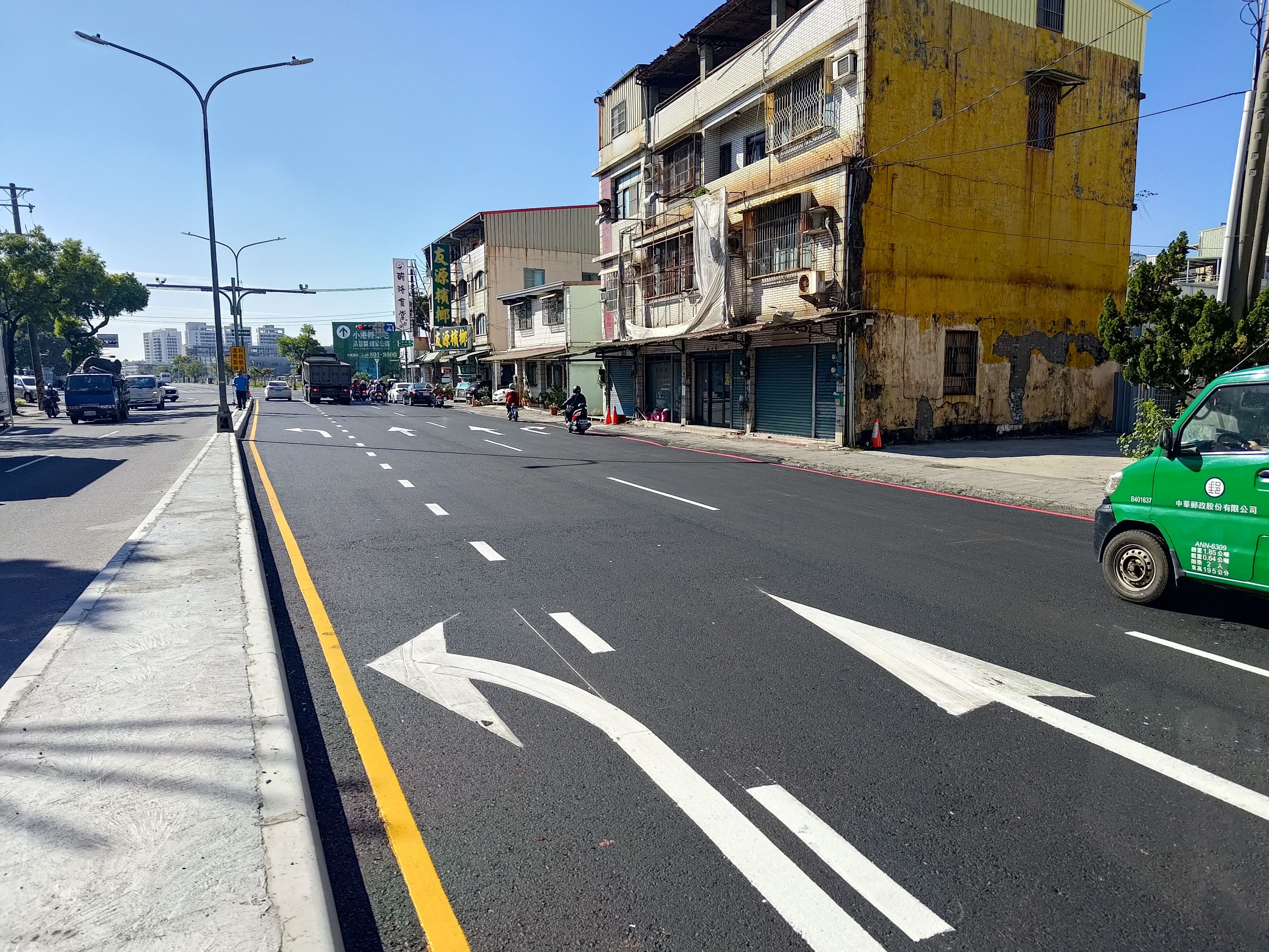 為改善小港區高鳳路、營口路、高松路路口交通壅塞情形,市府工務局道路養護工程處近期已配合交通局規劃,完成路口交通環境改善,藉由縮減中央分隔島寬度、增設左轉專用車道等方式,改善交通瓶頸、提升通行效率,交通局觀測報告亦指出,路口調整路型及時制後,道路平均速率已獲得明顯改善。