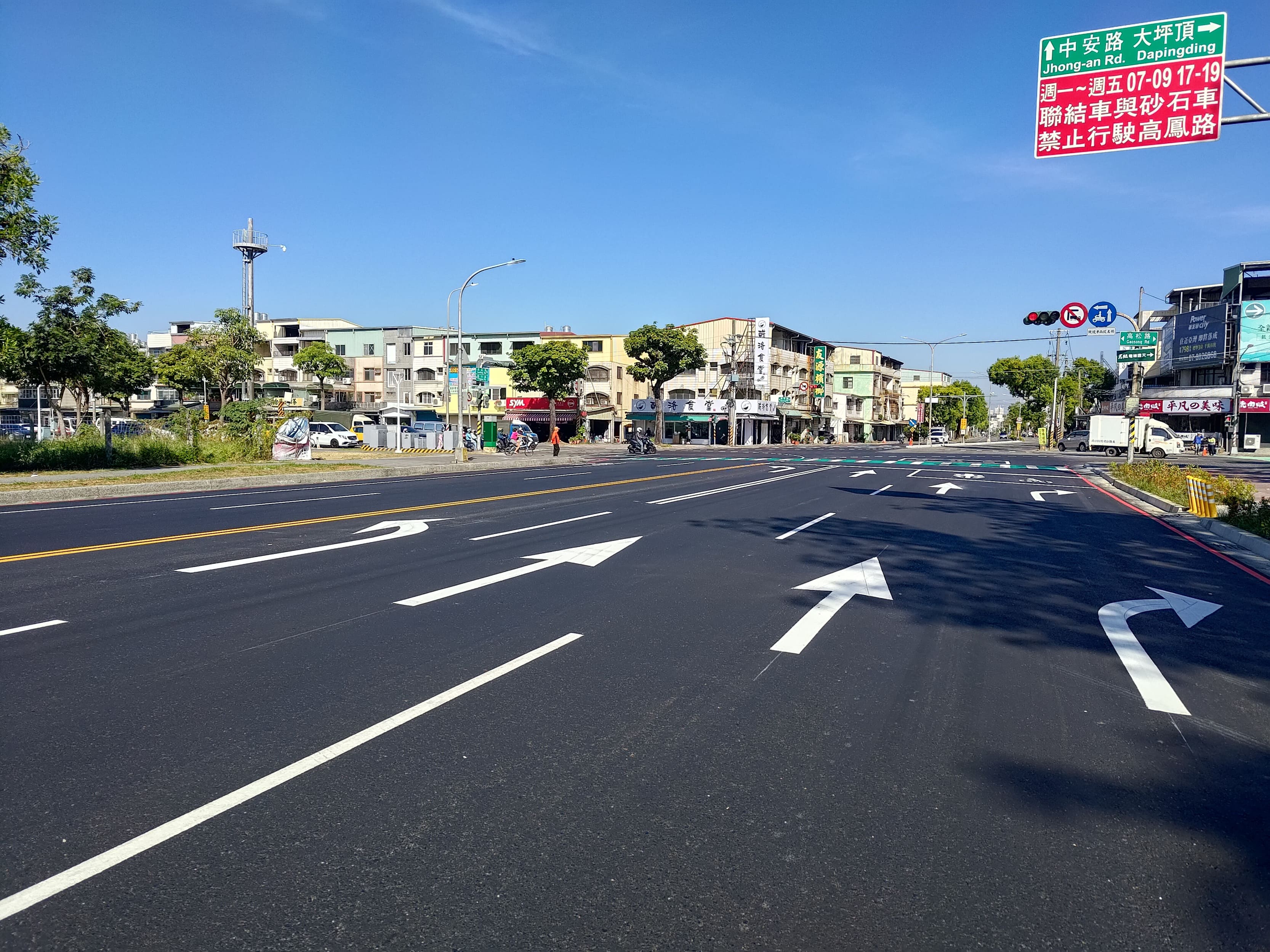 工程針對高鳳路口約100公尺長路段中央分隔島進行削切縮減寬度後,調整路型增設左轉專用道,亦調整營口路路型設置左轉專用道,並重新刨鋪改善路面,增進車流動線順暢性與行車舒適度。在交通局、警察局、工務局公園處等單位互相協調合作,以及用路人耐心配合等待下,得以順利完工。